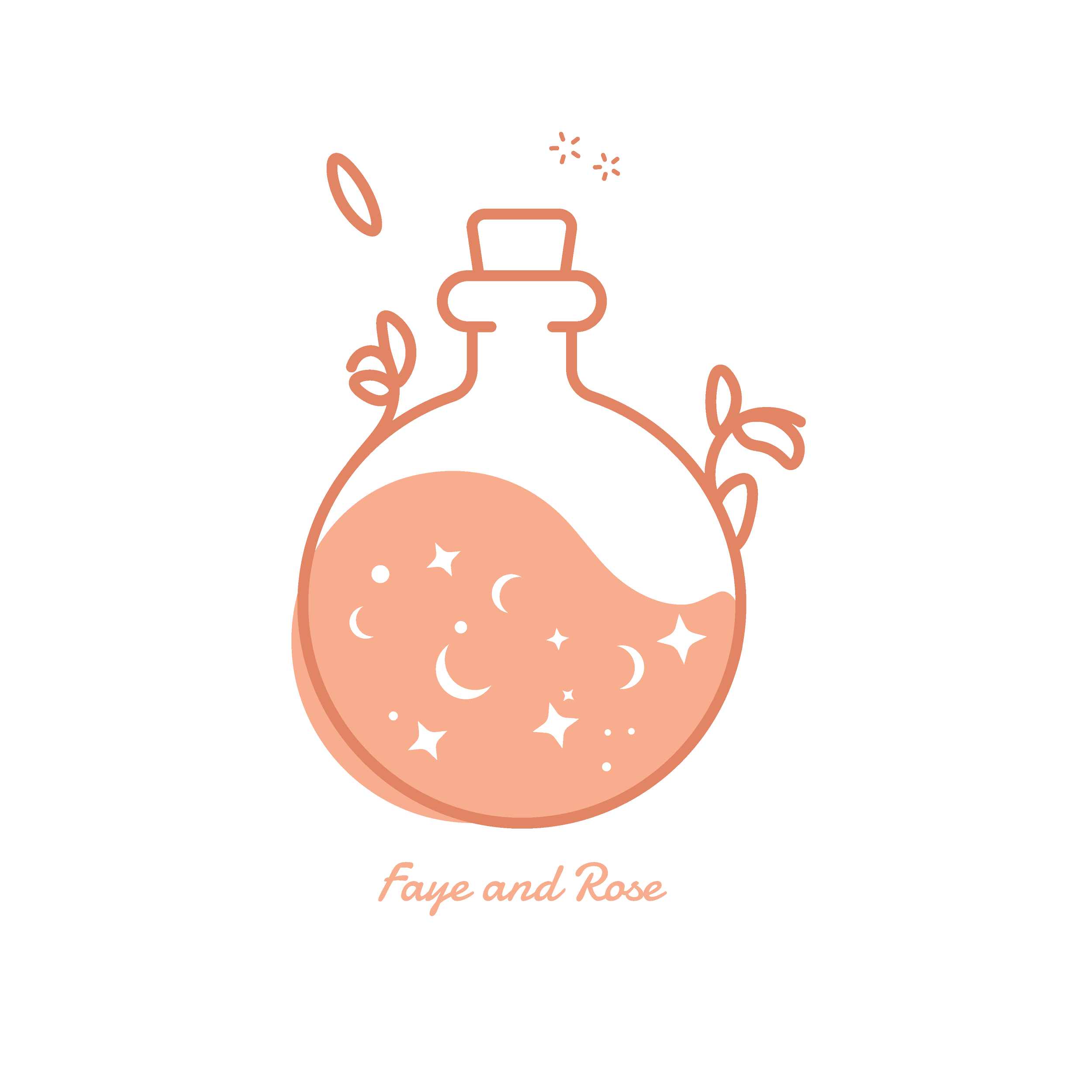 When she found the concept she liked I got to work! Finally the Faye and Rose logo was finished, the mystical potion bottle.